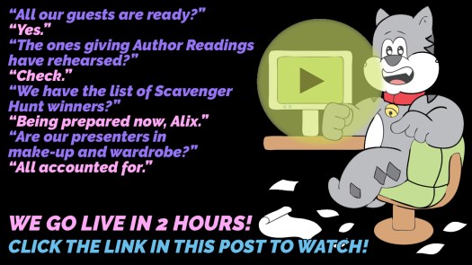 A schedule of panel discussions and author reading sessions was put in place by Gillian in New Zealand. The website was created by Ava in Romania. Our mascot was invented by Glenn in Northern Ireland. I was nominated to do social media. The delivery method was being chosen.